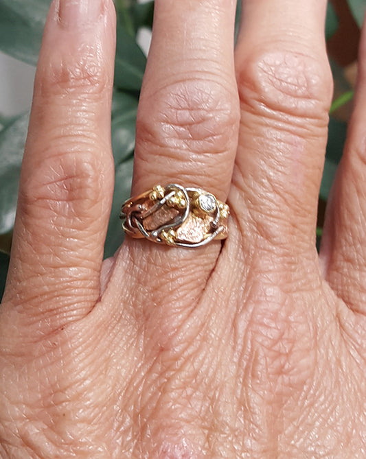 Zest Jewelry, where artistry meets nature in every handcrafted piece. Designed by Asheville-based goldsmith Wren Hendrickson, our jewelry is inspired by the textures, forms, and spirit of the natural world. From custom engagement rings to meaningful everyday wear, each piece is made by hand and created in collaboration with you.