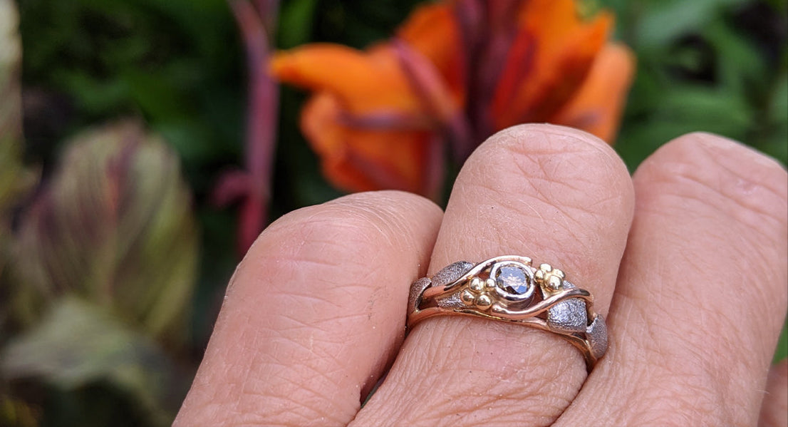 Zest Jewelry, where artistry meets nature in every handcrafted piece. Designed by Asheville-based goldsmith Wren Hendrickson, our jewelry is inspired by the textures, forms, and spirit of the natural world. From custom engagement rings to meaningful everyday wear, each piece is made by hand and created in collaboration with you.